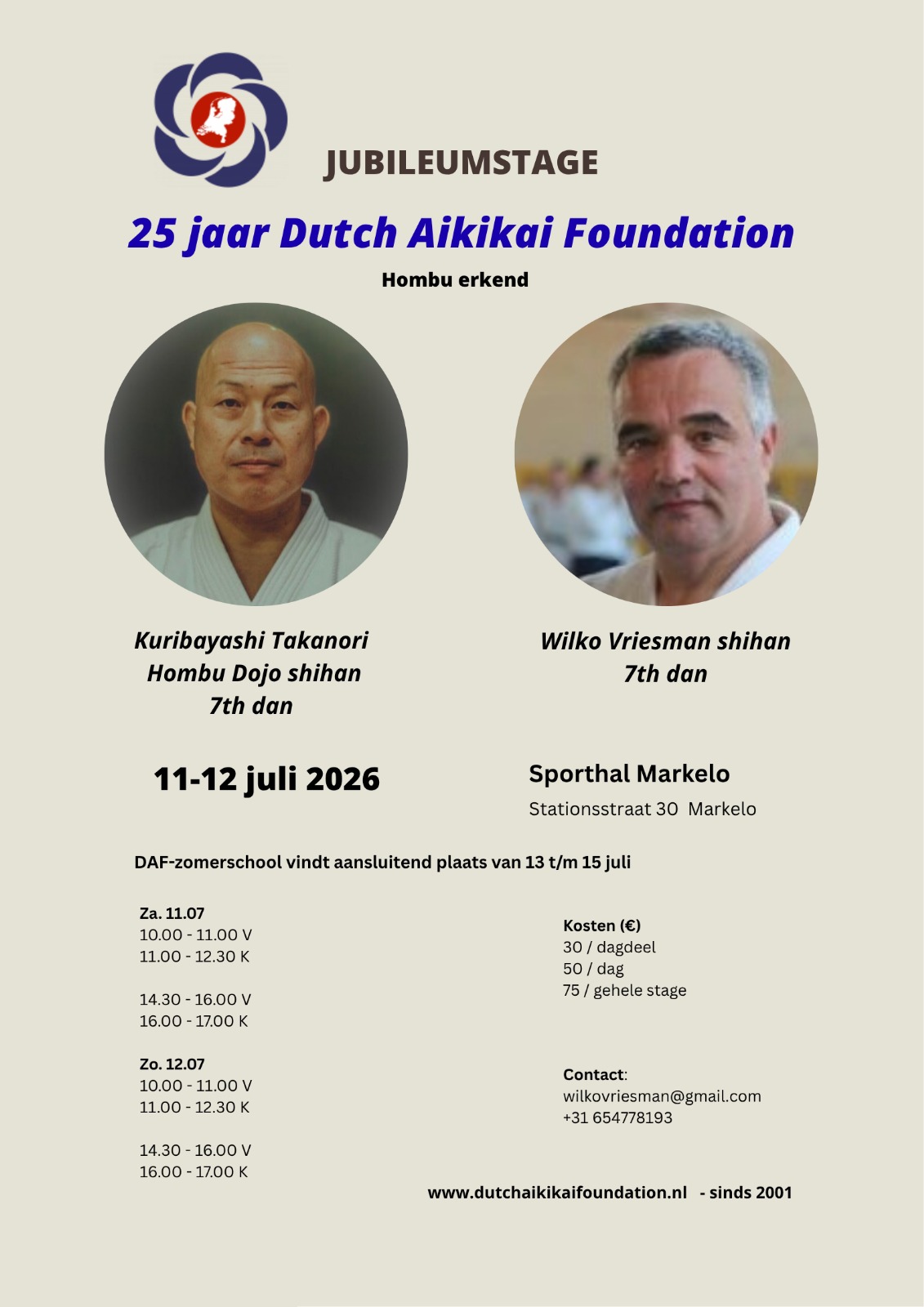 Zomerschool in het teken van het 35 jarige bestaan van de Dutch Aikikai Foundation. De zaterdag en zondag worden verzorgd door Hombu Shihan Kuribayashi en Wilko Vriesman Shihan.