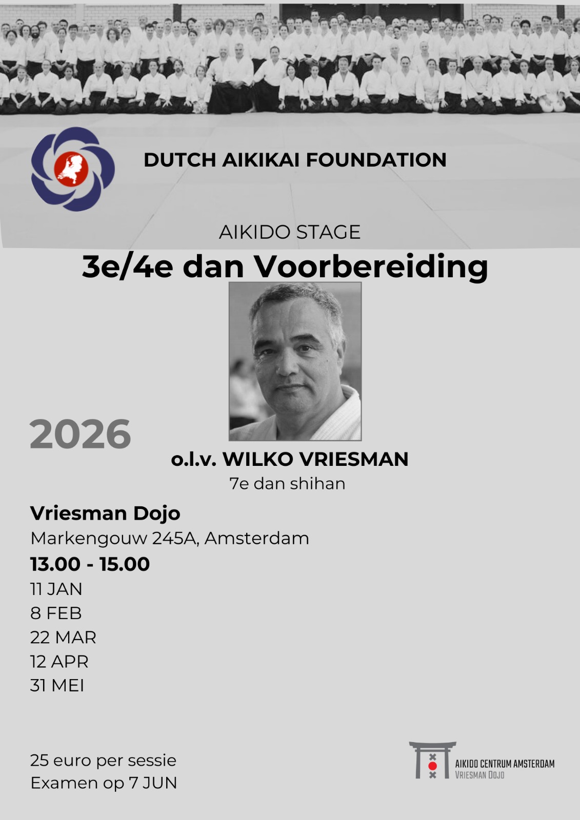 De training onder leiding van Wilko Vriesman Shihan is bedoeld om gezamenlijk naar 3e en 4e Dan toe te werken.